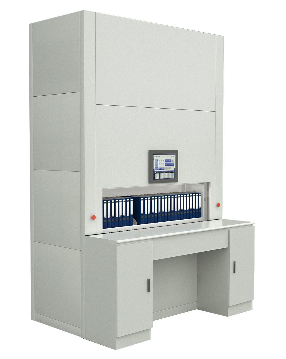 輕量化智能化便捷化的文件儲存需求基于垂直回轉貨柜的類似運動原理采用鏈斗式升降機的運作,結合RFID射頻技術與高品質工控屏。